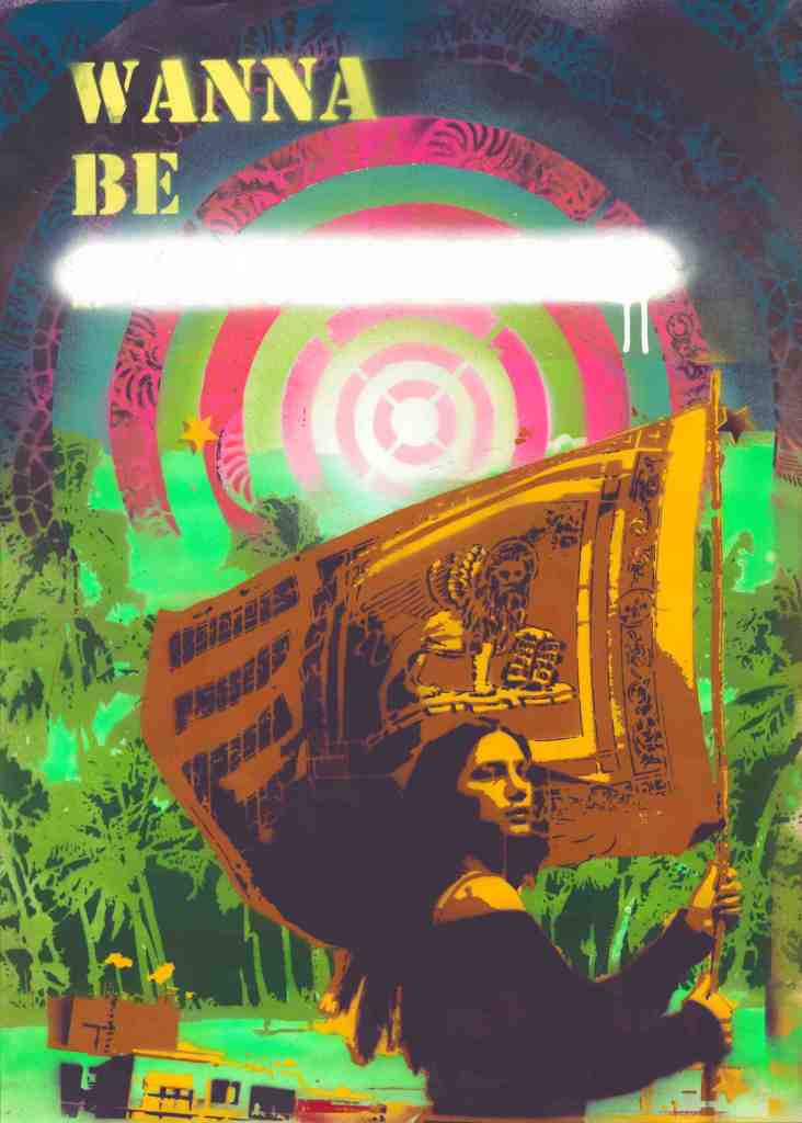 viva la luz / 2023/ Sprühfarbe auf Papier /90x63cm