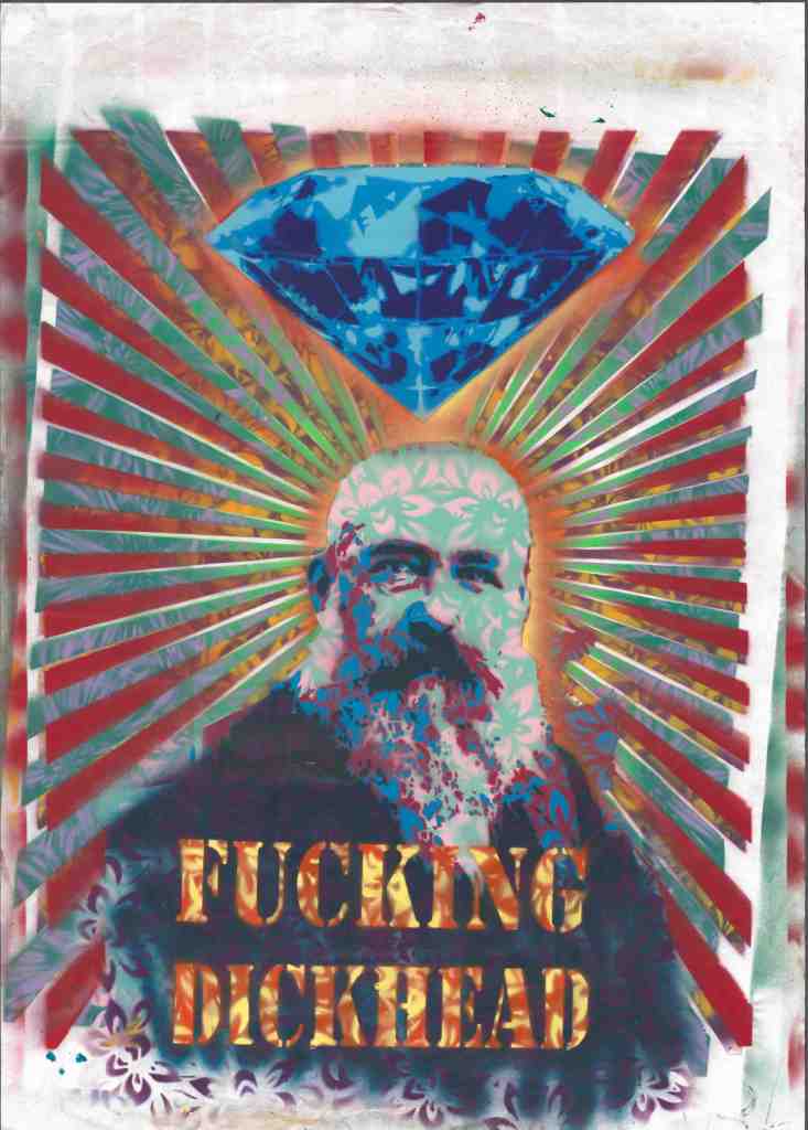 dickhead / 2023/ Sprühfarbe auf Papier /90x63cm