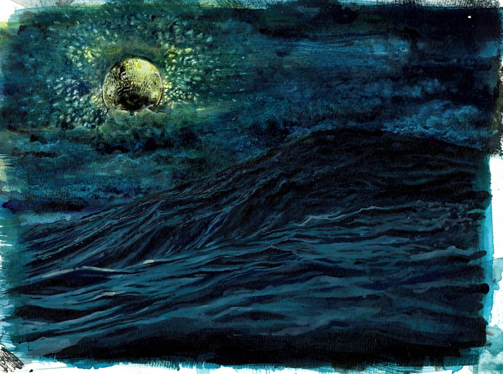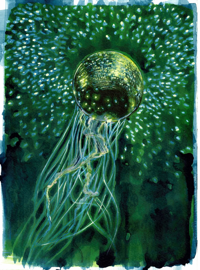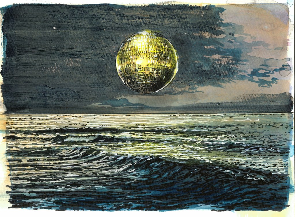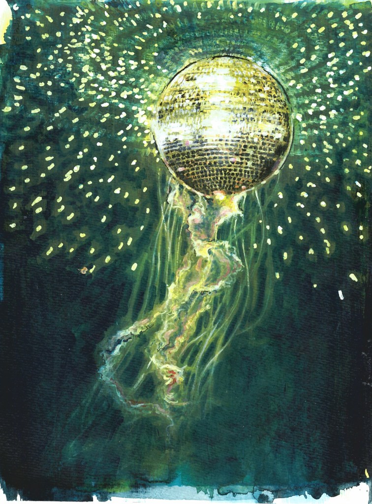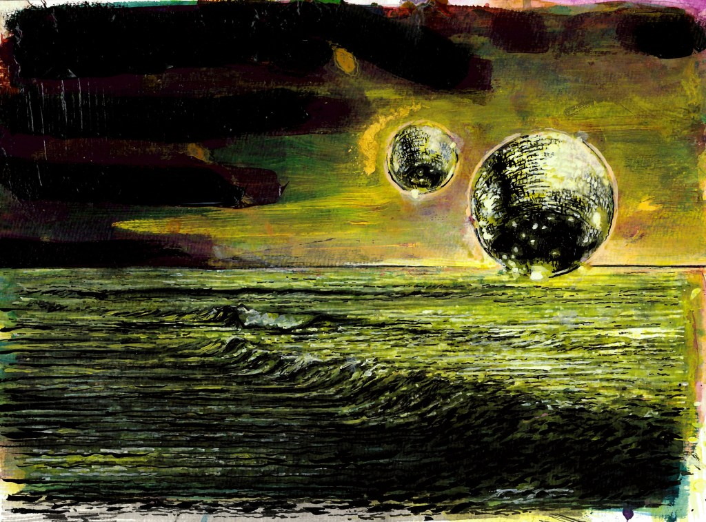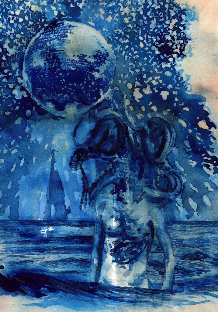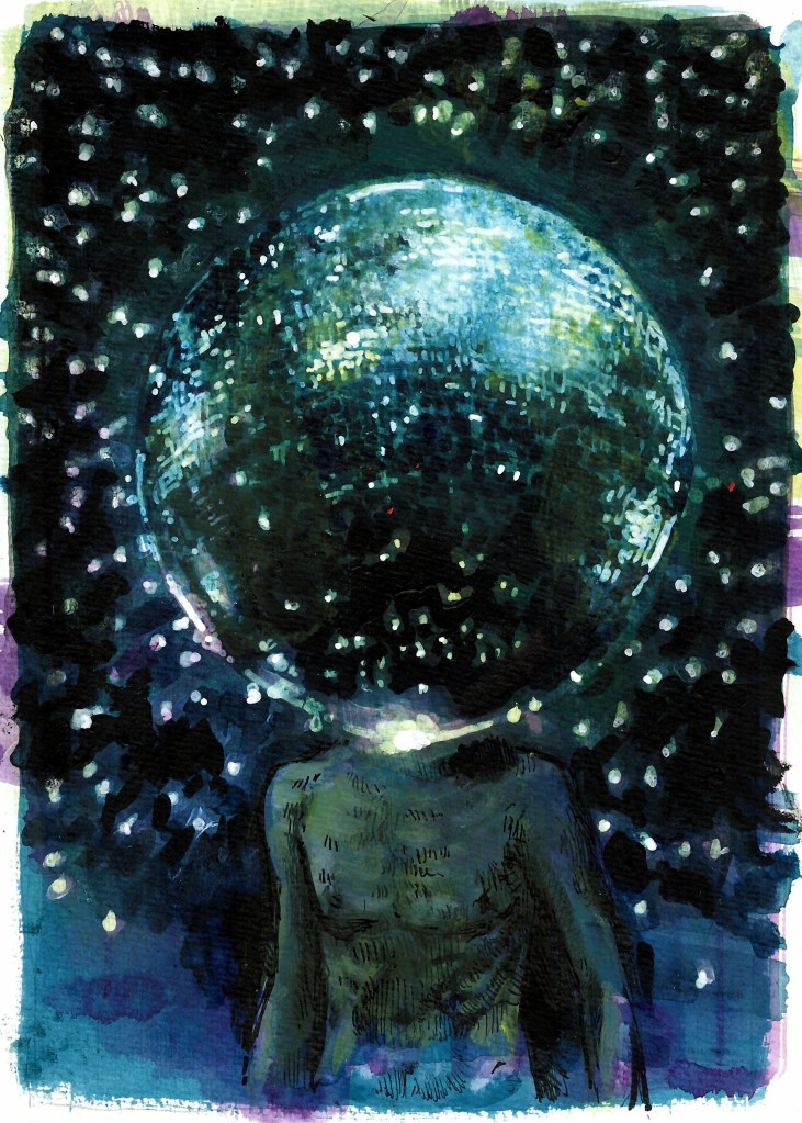 Rückkehr zum silbernen Planeten / 2025/ Serie von Mischtechniken ( Acryl, Aquarell, Faserstift, Tusche, Sprayfarbe) auf Papier / 32×24 cm