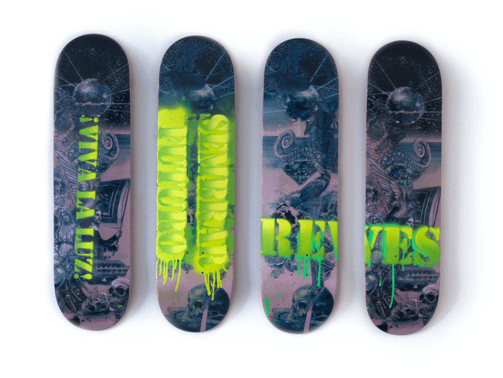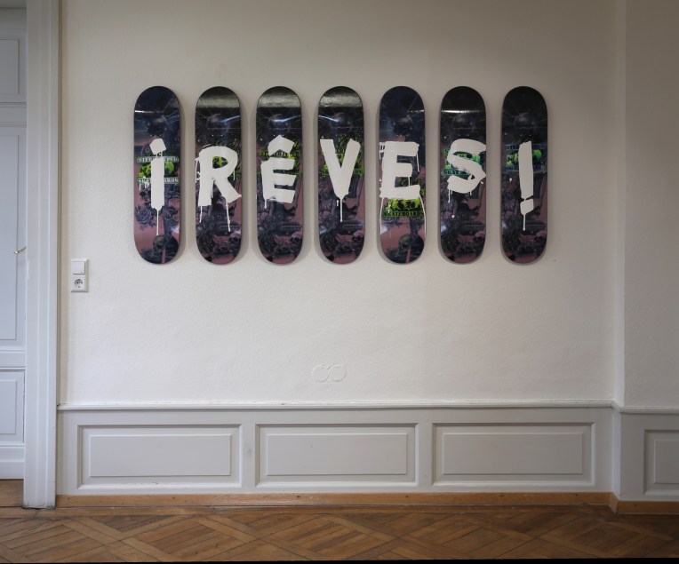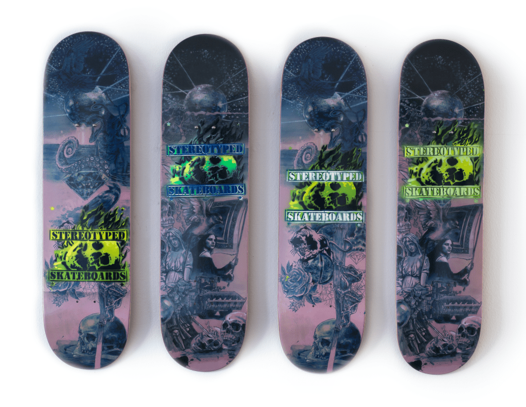 Stereotyped skateboards Projekte Bernt Jahnel auf „reves“ / 2024 / Unisportanlage Konstanz Installationsansicht Ausstellung „Rückkehr zum silbernen Planeten“ / 2025 / Villa Bosch / Radolfzell Stereotyped Skateboards / 2024 / Auflage 25 Stück / Digitaldruck und Sprayfarbe auf Skateboard Stereotyped Skateboards II / 2024 / Auflage 25 Stück / Digitaldruck und Sprayfarbe auf Skateboard Detail: Konzeptzeichnung / 2024 / Acryl auf Papier Ähnliche Beiträge