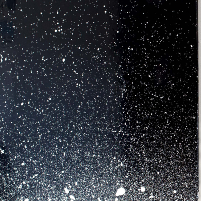 Beim Streichen unseres Wohnzimmers habe ich diese lackierten Platten untergelegt. Dabei ist eine Weltalllandschaft entstanden. Mir gefällt dabei, dass ich kein Bild gemalt, sondern einen Raum gestrichen habe. Eine Art Nebenprodukt ist dieses Bild.